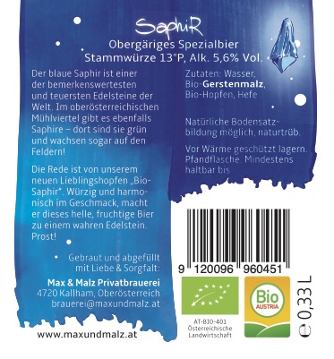 Die Rede ist von unserem neuen Lieblingshopfen „Bio-Saphir“. Würzig und harmonisch im Geschmack, macht er dieses helle, fruchtige Bier zu einem wahren Edelstein. Prost!