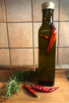 Unser Olivenöl, verfeinert mit Chilis aus unserem naturbelassenen Garten.