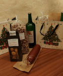 Inhalt: Schafwurst, Bio-Apfelsaft, Bio-Dinkel Bandnudeln, Bio-Einkorn Schoko Kekse